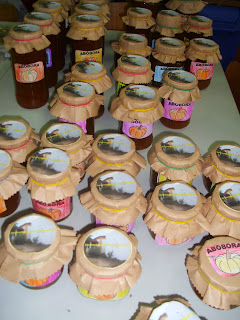 E ainda enchemos os frascos de compota ( 42 no total ), fizemos as etiquetas para os frascos e decoramos as tigelas de marmelada...