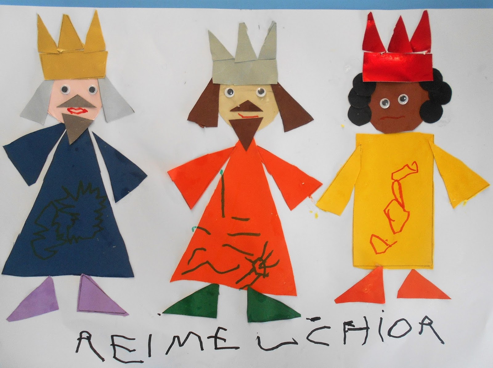 E os Reis ficaram bem coloridos e bonitos e assim aprendemos a historia dos Reis, treinamos o recorte e aprendemos matemática (figuras geométricas)...