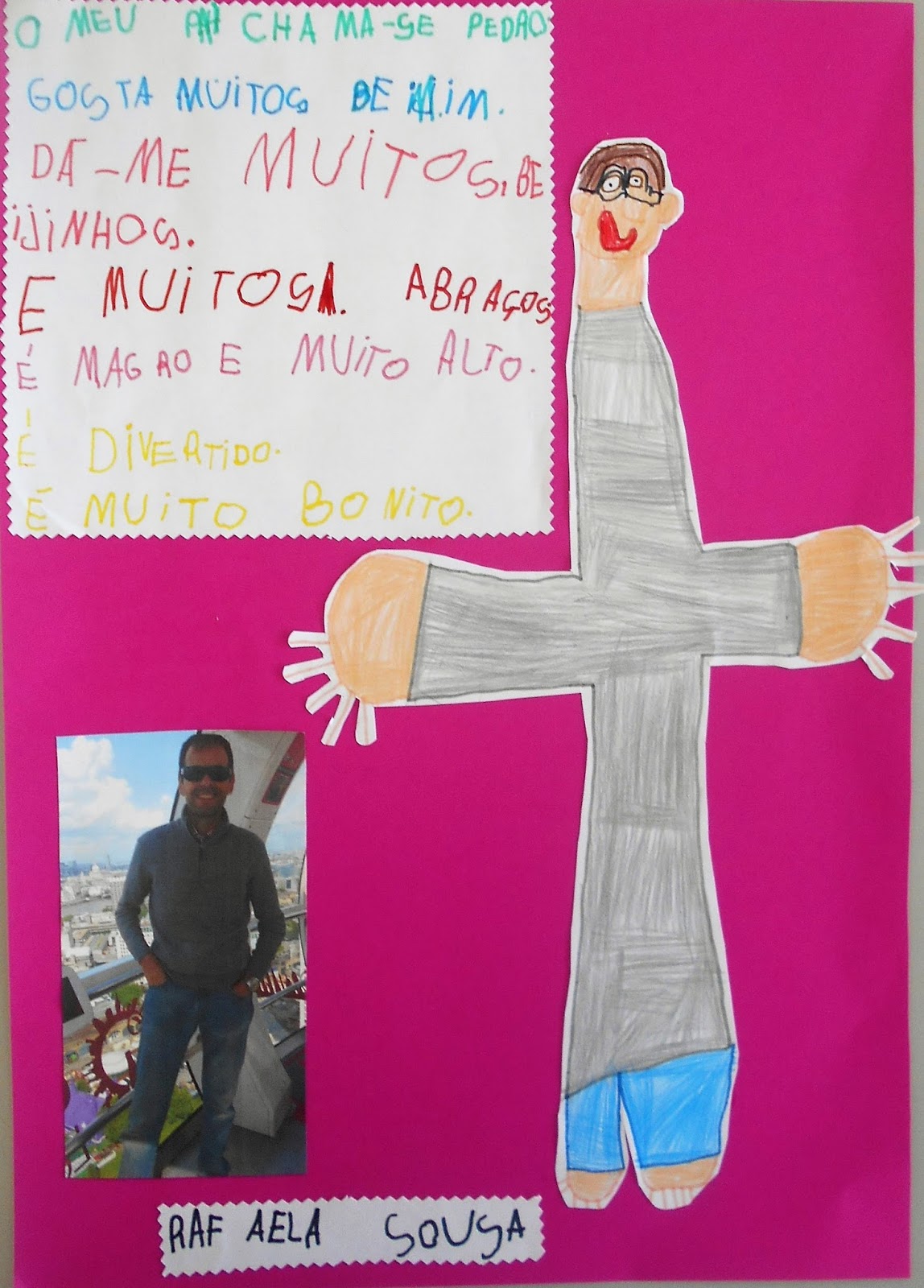 Como sempre os pais esmeraram-se e à escola chegaram trabalhos muito diversificados e criativos, que retratam os filhos... Por cá também os filhos estiveram a retratar os pais e a descrever o que pensam sobre eles...