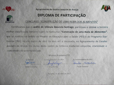 Ontem a nossa educadora recebeu este email, no seguimento da nossa participação no concurso « Construção de uma roda de alimentos» no mês de Abril...