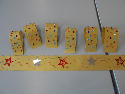E terminamos as nossas coras para amanhã ir cantar as Janeiras...Colamos vários brilhante e enfeitamos com estrelas e glitter brilhante...