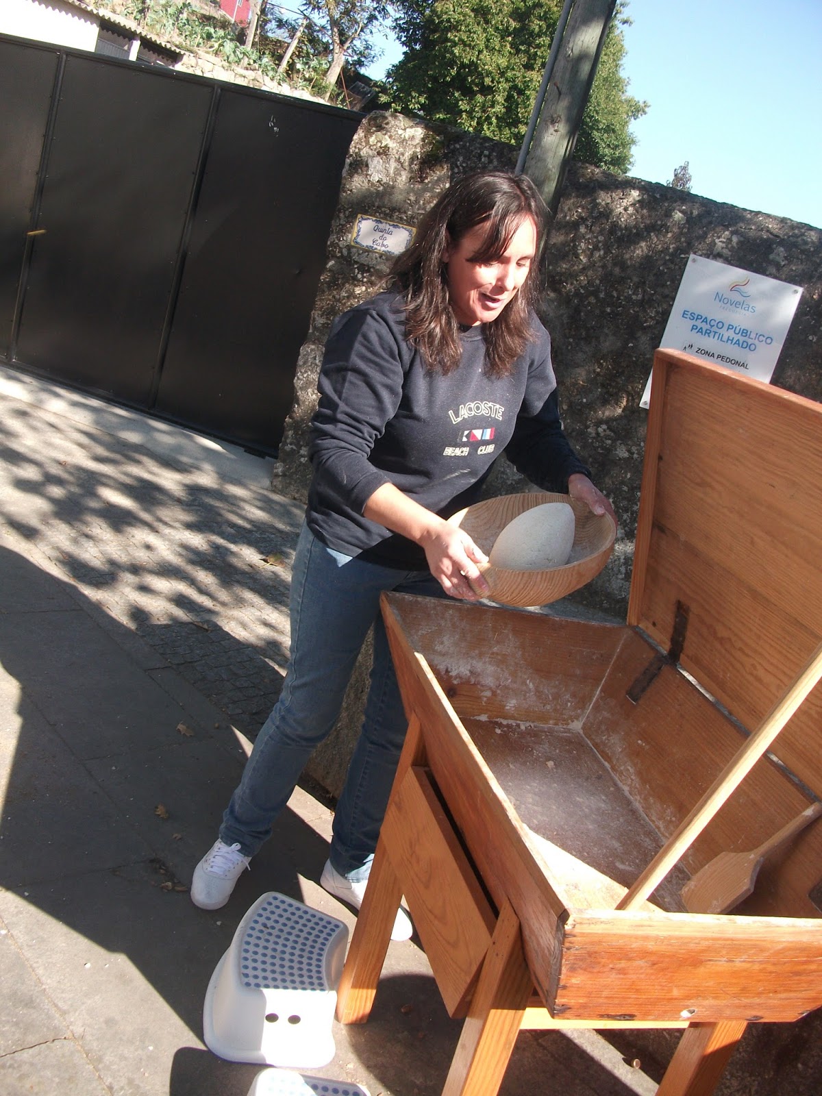 Cá fora, a apanhar um lindo sol de outono  vimos a masseira e foi-nos explicado como se faz a broa...