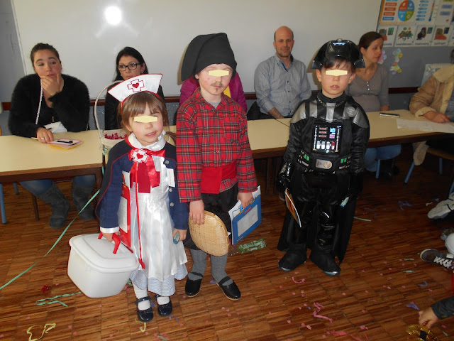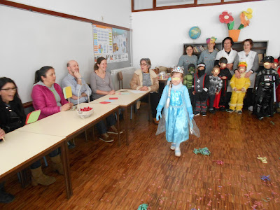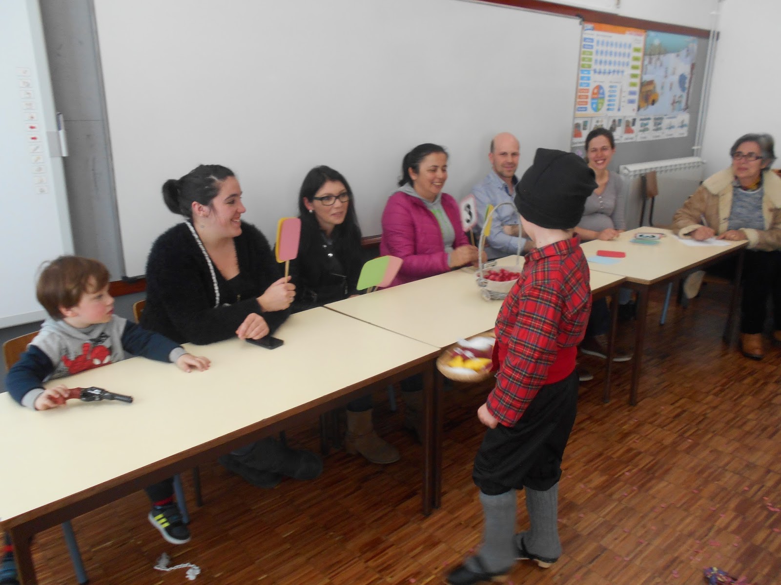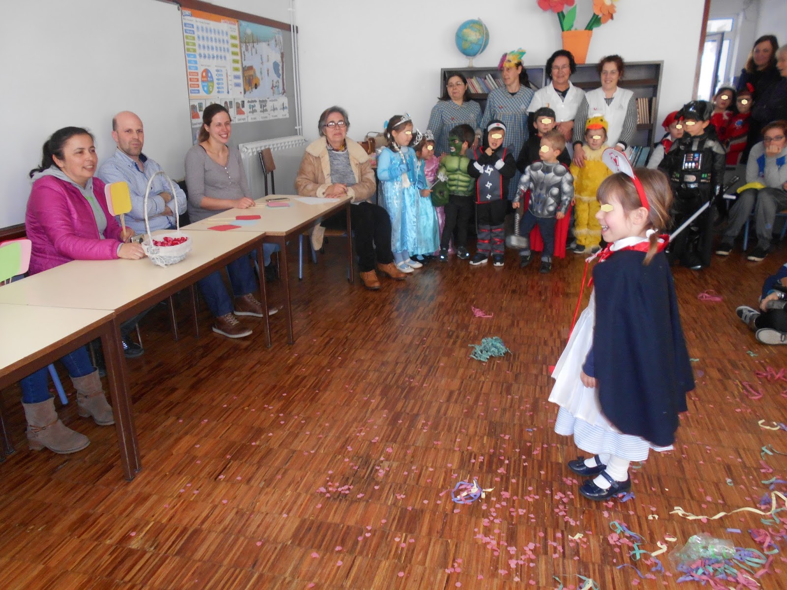 O Concurso de máscaras, para o qual contamos com um júri constituído por mães dos 2 níveis de ensino ( pré escolar e 1º ciclo) e pelo professor Bruno ( Língua Gestual Portuguesa)....  Mas antes do concurso tiramos algumas fotos que mostram como todos estávamos muito, mas mesmo muito bonitos - TODOS NÓS...