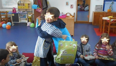 Hoje também tivemos este presente para a biblioteca... e estivemos a ouvir a história...