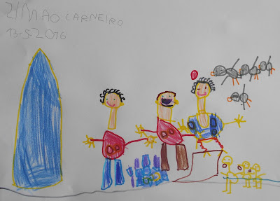 Enquanto a nossa educadora ia «contando» a história, nós devíamos ir desenhando seguindo com o máxima atenção e rigor, as indicações dadas. Percebemos que se nos distraímos, não conseguimos cumprir a tarefa com sucesso...